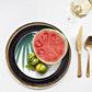 The Dauville Collection exhibits a contrast between creamy textured finish and bold metallic glaze, which in turns yields a unique harmony of glamour and subtlety. Each piece features a contemporary shape and distinctive free-form coating. Perfect for entertaining your guests with artisan sophistication and poise.