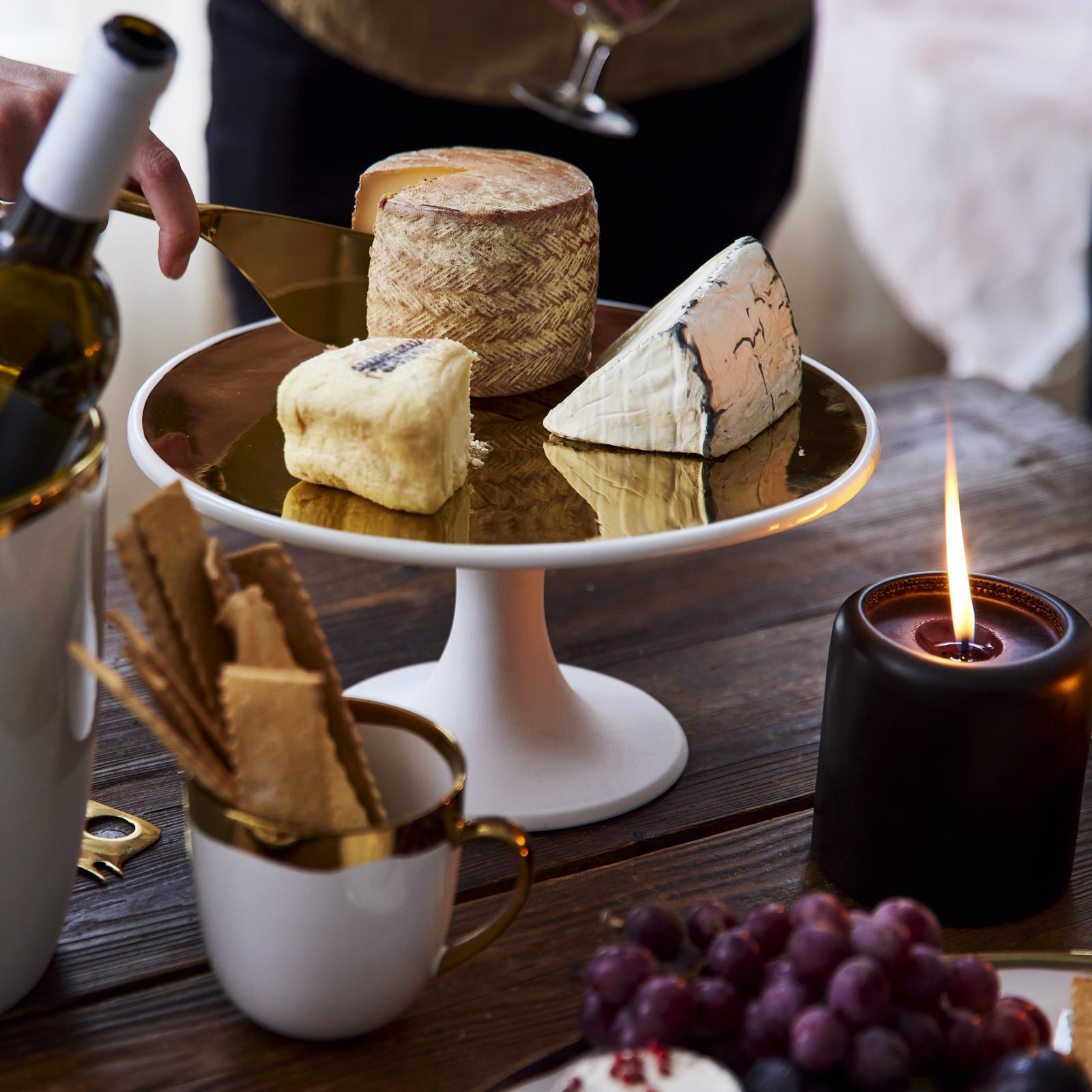 The Dauville Collection exhibits a contrast between creamy textured finish and bold metallic glaze, which in turns yields a unique harmony of glamour and subtlety. Each piece features a contemporary shape and distinctive free-form coating. Perfect for entertaining your guests with artisan sophistication and poise.