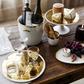 The Dauville Collection exhibits a contrast between creamy textured finish and bold metallic glaze, which in turns yields a unique harmony of glamour and subtlety. Each piece features a contemporary shape and distinctive free-form coating. Perfect for entertaining your guests with artisan sophistication and poise.