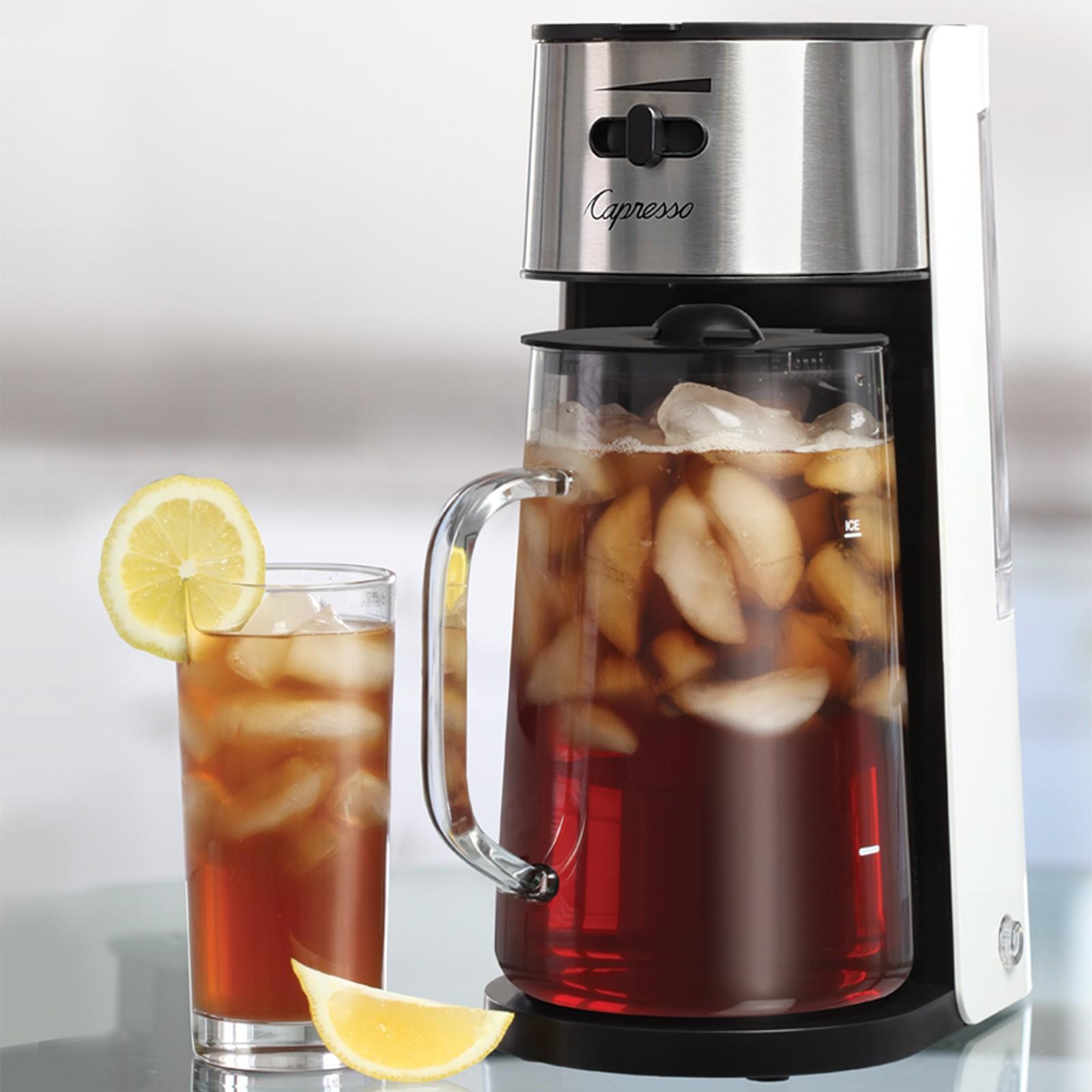 Making iced tea on warm days has never been easier. Simply add your favorite loose tea or tea bags to the reusable filter and make sure the water tank is full. Fill the glass pitcher with ice to the ice level marking on the pitcher prior to brewing. Adjust the brew strength with the slide on the front of the machine, for stronger tasting tea slide lever to the right.