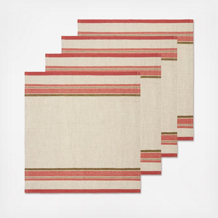 Enhance your dining experience with the Antibes napkins, a perfect blend of style and practicality for both kitchen and dining room settings. Crafted from a luxurious heavyweight linen and cotton blend, these napkins feature a narrow stripe design and a natural color palette, adding a sharp, casual French cafe look to your table. Available in beautiful color options and sold in a set of 4, these oversized napkins bring a touch of French country charm with their elegant, luxurious feel. Handmade for a personal touch, the Antibes napkins are easy to care for - simply machine wash and steam in the dryer for effortless upkeep. Elevate your everyday meals with these versatile, easy-care napkins, perfect for any French-inspired decor. Easy Maintenance: Despite their luxurious feel, these napkins are designed for everyday use. They are machine-washable, making cleanup a breeze. Premium Quality: Crafted from a heavyweight linen and cotton blend, they are not only beautiful but also durable, designed to withstand frequent use. Offers a versatile and stylish addition to your table setting. Heavy weight linen and cotton blend. Set of 4 oversized napkins.