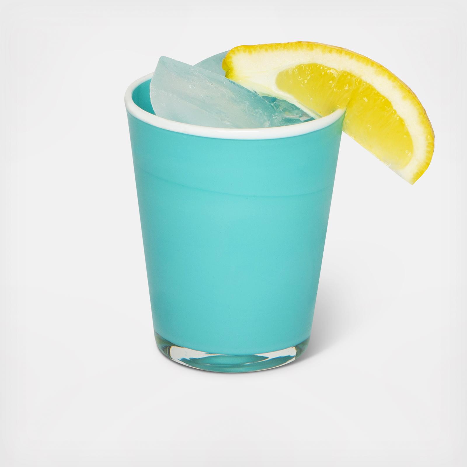 Drawing inspiration from sunny days spent by the ocean, the Summer Glass Collection reveals a fresh design with a brightly colored palette. Each tumbler is lightly frosted, resembling sea glass and features a contrasting colored rim. Serve up a little summer with this artfully designed glassware selection. The hand blown glassware is versatile enough to complement nearly any style. Ideal for any occasion, these glasses will instantly liven a table setting with color, charm and personality.