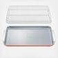 For all your baking needs, our Large Baking Sheet & Cooling Rack Duo is designed to make your life in the kitchen that much easier. The 18x13" Large Baking Sheet features a non-toxic, naturally slick ceramic surface and is sized perfectly for the 18x13" stainless steel Cooling Rack to nest inside.