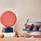Dimensions (perracotta): storage rack 1: 20.7 x 5.8 x 8.3 in.; storage rack 2: 20.7 x 5.8 x 8.3 in.; large baking sheet: 20.3 x 13 x 0.9 in.; medium baking sheet: 15 x 9.9 x 0.9 in.; muffin pan: 15.4 x 10 x 1.3 in.; rectangle pan: 15.4 x 9.6 x 2.2 in.; cooling rack: 17.8 x 12.8 x 0.9 in.; square pan: 9.4 x 9.4 x 2 in.; loaf pan: 8.9 x 5 x 2.7 in.; circle pan: 9.3 x 9.3 x 2 in.