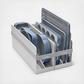 Dimensions (slate): storage rack 1: 20.7 x 5.8 x 8.3 in.; storage rack 2: 20.7 x 5.8 x 8.3 in.; large baking sheet: 20.3 x 13 x 0.9 in.; medium baking sheet: 15 x 9.9 x 0.9 in.; muffin pan: 15.4 x 10 x 1.3 in.; rectangle pan: 15.4 x 9.6 x 2.2 in.; cooling rack: 17.8 x 12.8 x 0.9 in.; square pan: 9.4 x 9.4 x 2 in.; loaf pan: 8.9 x 5 x 2.7 in.; circle pan: 9.3 x 9.3 x 2 in.