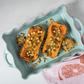 Cooking and serving essentials for any gathering and occasion are the main purpose of this Costa Nova’s collection. Back by popular demand our fine stoneware ruffled bakers are now available in five colorways - white, cream, blue, red and gray - and three sizes: large and medium rectangles and a new smaller square alongside with new oval ramekins perfect for individual courses. New serveware items complete the collection and they all match with many others dinnerware collections.
