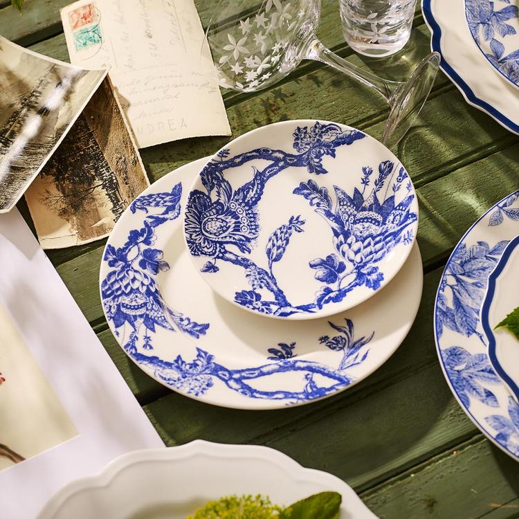 Arcadia, a collaboration with the Williamsburg Foundation, weaves together elements from an archival tapestry to create a winding, large scale floral that feels at once vintage and contemporary, warm and welcoming. A stunning style statement in blue and white, it offers a strong graphic frame for mixing, matching and layering. Complex and understated, Arcadia is a pattern that beautifully combines the best of the past with a gorgeous vision for the future. This dinner plate frames food in big, bold highly detailed vines and blooms, lending character to the table. Dishwasher and microwave safe. Made by hand in Massachusetts.
