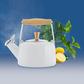 The Sven enamel-on-steel teakettle is part of the Scandinavian Collection. Clean lines and natural wood help create a design that is distinctly northern European. The blonde wood handle and knob are made of 100% natural rubberwood. The wood stays cool to the touch when boiling water and the light color beautifully accents the enamel finish of the teakettle's body. The perfect example of form and function! 1.4 quart capacity.