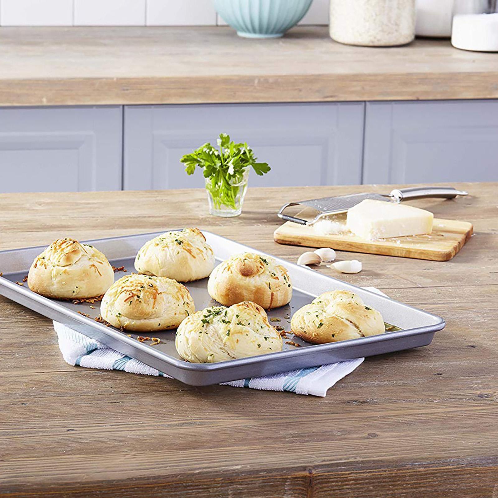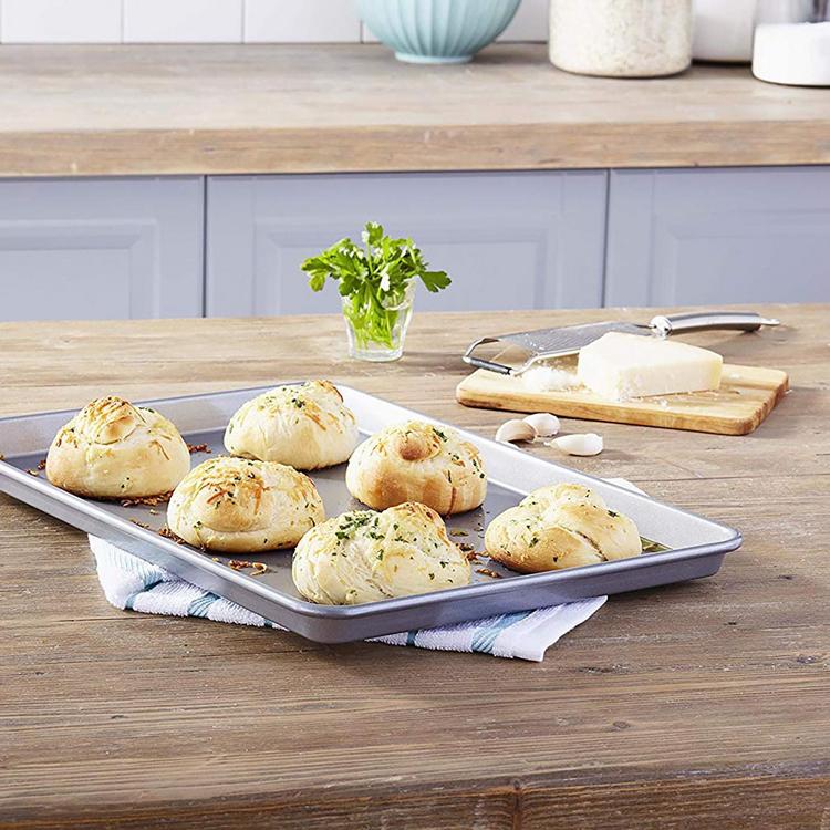 The Commercial II Nonstick line is dual coated, diamond-quality nonstick bakeware and is built strong and made to last - day after day, year after year. The heavy-weight aluminized steel ensures superior heat conduction and even baking.