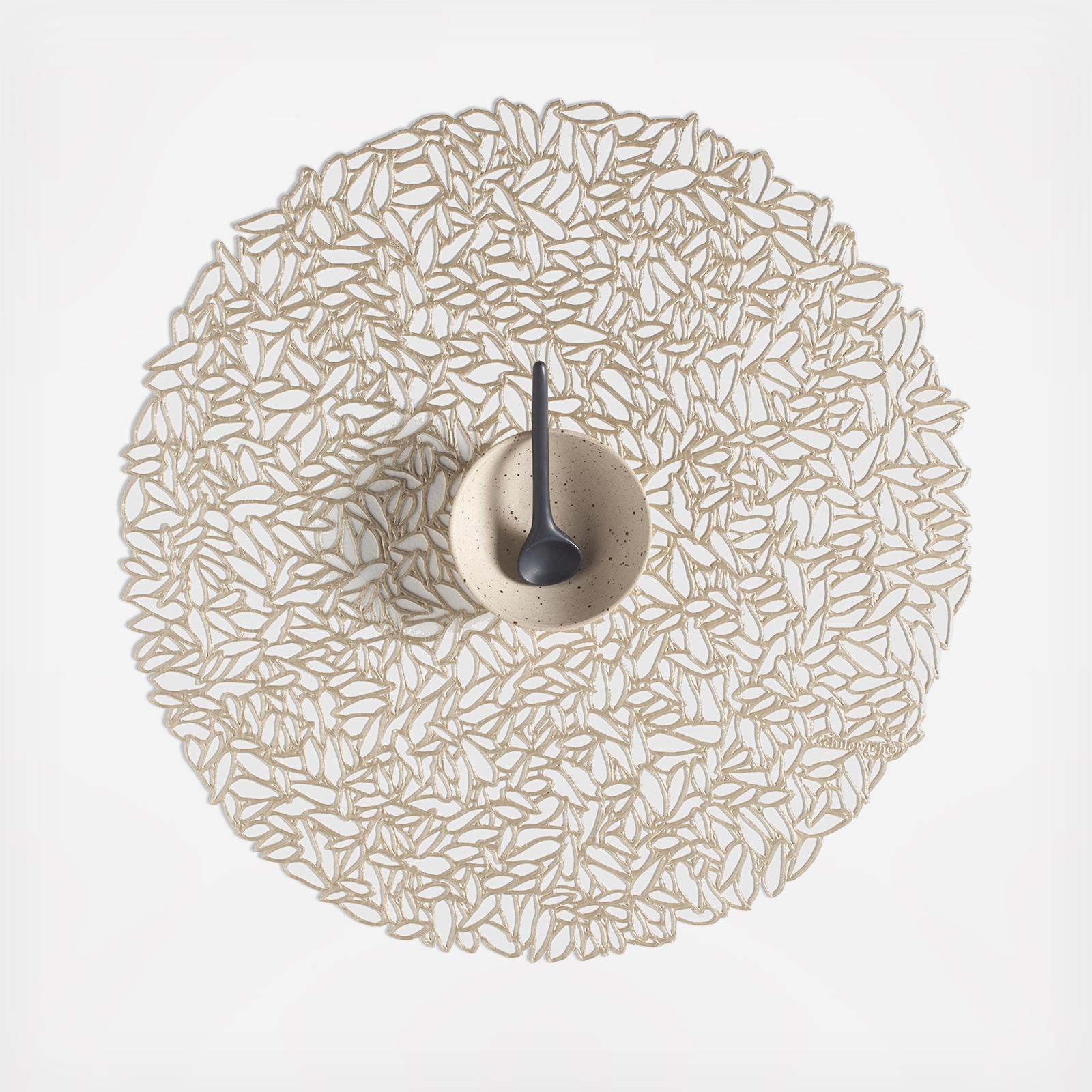 Petal, part of “Pressed” collection of placemats, is inspired by scattered flower petals. The textile is created through a complex process utilizing special molds and requiring close collaboration specialists at the producing factory. Use this delicate modern lace cut out to surround a plate like a charger, or alone for a decorative and understated placemat that is surprisingly resilient. Suitable for indoor and outdoor use. Free of phthalates.
