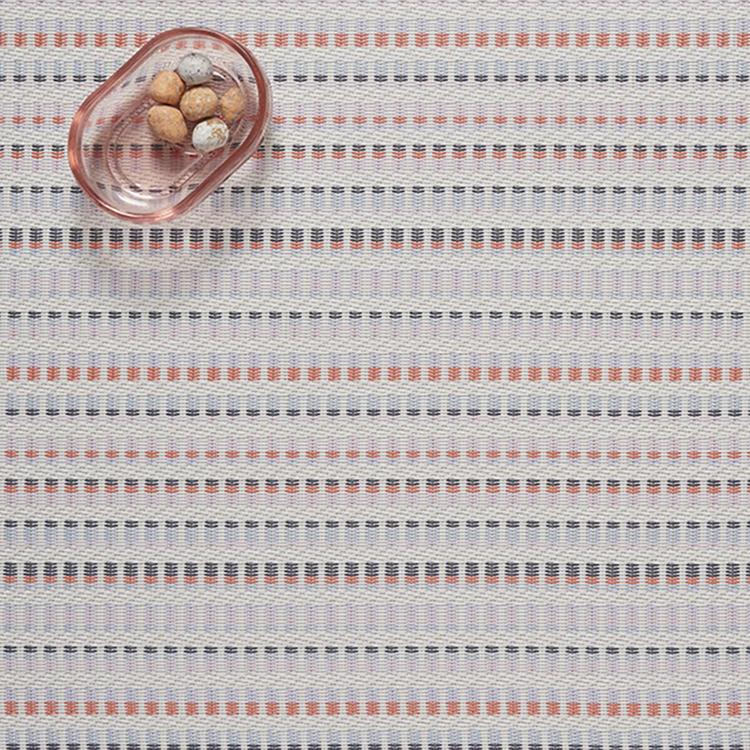 Revealing patterns within patterns and stripes within stripes, Tambour was developed through an iterative process of combining multiple weaves into one harmonious design. It explores novel ways to display vibrant color, balancing the horizontal and the vertical to create a versatile visual rhythm. Suitable for indoor and outdoor use. Made in the USA with terrastrand and microban. Free of phthalates.
