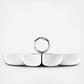 The Vertigo silver-plated serving dish features 3 bowls connected by a circular handle. This dish is perfect for serving nuts, olives and other light snacks. Vertigo’s bold motif of a subtly asymmetrical, thick ring positioned playfully can be found on every piece in the collection designed by Andrée Putman.