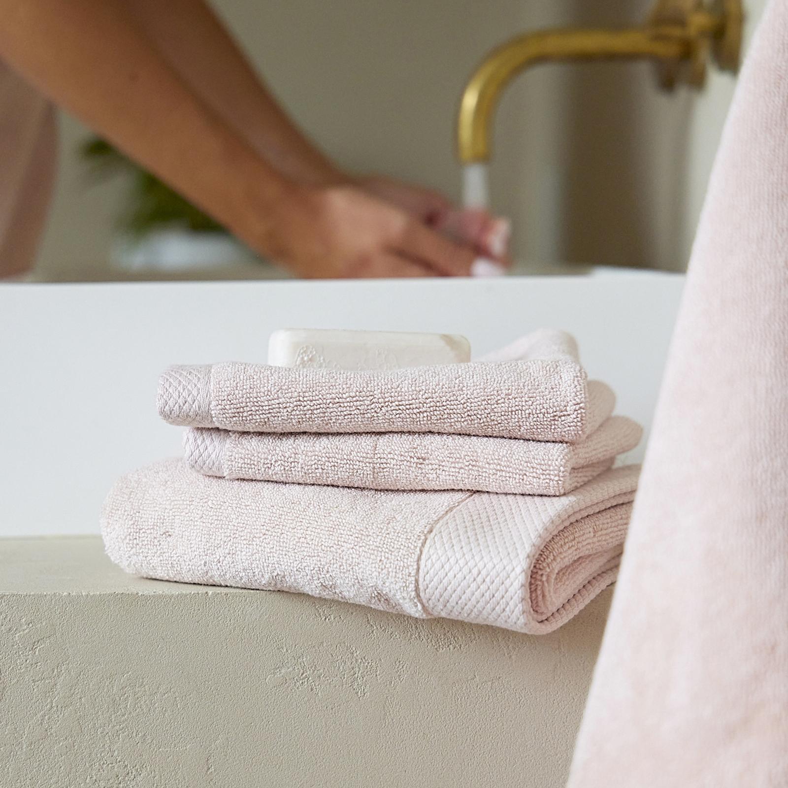 Feel the densely woven sensory delight of our thickest towel, the Luxe. Designed for those who prefer the feel of a substantial, weighty towel, the Luxe blends fine yarns, woven close and compact to create a smooth and lavish finish. Made with the highest quality 100% Turkish cotton with low loop which reduces snags, a fabric renowned for its long, superior quality fibres, this towel is durable with a high-quality hotel feel. An easy-to-pair design with a deep banded diamond weave border for a tailored vibe, this is the king of towels for any spa-inspired bathroom.