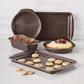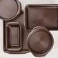 Get delectable color and sweet nonstick action with the durable, reliable Circulon Nonstick Bakeware 5-Piece Bakeware Set. Superior nonstick technology and solution-driven design set Circulon bakeware apart from other nonstick bakeware. The technology begins with raised circles on the baking surface that are coated with premium-quality nonstick. Rolled-rim bakeware design includes distinctive chocolate brown color inside and out, and wide handles for plenty of grip, even with bulky oven mitts. Oven safe to 450°F, and backed with a Limited Lifetime Warranty, the nonstick bakeware set. Get set for delicious baking convenience with the Circulon Nonstick Bakeware 5-Piece Bakeware Set, the perfect partnership of baking pans and performance. This product contains (Este producto contiene) PTFE (PFAS). For more information on PFAS or chemicals in this product, visit (Para obtener mas informacion sobre PFAS o productos quimicos en este producto, visite) circulon.com/pages/product-disclosures.