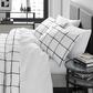 Bold brushstrokes on a crisp background create a windowpane check that is graphic while still reflecting the artist’s hand. Printed on silky microfiber, this painterly grid offers a sophisticated modern accent for your bedroom.