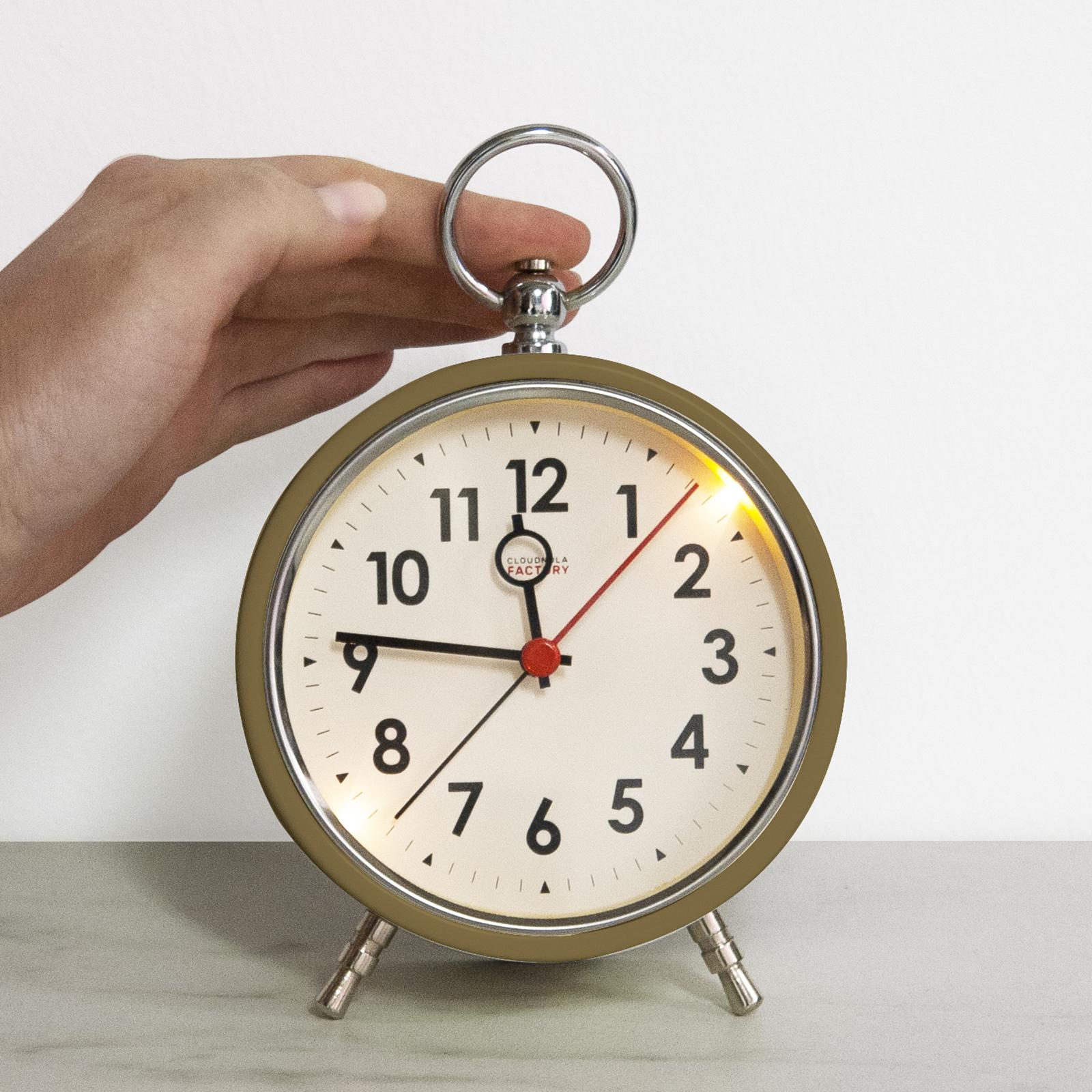 LED light provides a modern touch to this chic metal alarm clock, with large clear numbers and silent movement. Snooze button included.