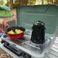Level up your food game with the Cascade Collection. Perfect for those times when trail mix just would not cut it, the Cascade 3-Burner Camping Stove makes it easy to cook great meals outdoors. Its durable, built-in carry handle makes it easy to bring it along to the campsite or park and its rust-resistant aluminized steel cooktop and removable chrome-plated pan support makes cleanup quick and mess-free. Because cooking out in the elements can be rough, this stove has two guards to shield the burners and flame from the wind, as well a push-button instastart ignition for automatic, matchless lighting. The best part? This stove's even-temp burners radiate 28,000 BTUs of cooking power equally across the 3 adjustable burners so your made-to-order pancakes do not have any burnt spots-just the way you like it.