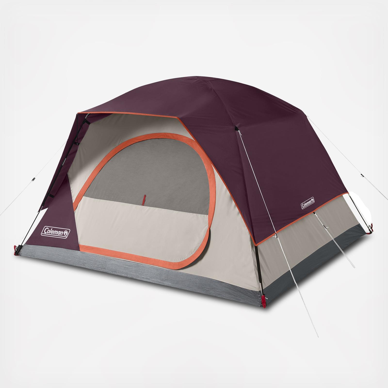 With a quick setup under 5 minutes, the Skydome™ Camping Tent lets you enjoy more time with friends and family on your next camping trip. There is plenty of room to stretch inside the spacious interior thanks to the nearly vertical walls that offer 20% more headroom than a traditional Coleman® dome tent. Plus, a wide door design means you can move air beds, sleeping bags, and other gear in and out with ease. Downpour in the forecast? Not to worry, the WeatherTec™ system's tub-like floor, patented welded corners, and inverted seams help keep you and your gear dry. This 4-person tent's compact size makes it a great choice for car camping or backpacking adventures. Skydome tents are available in a range of sizes (2-person, 4-person, 6-person, or 8-person), with or without Dark Room™ technology.