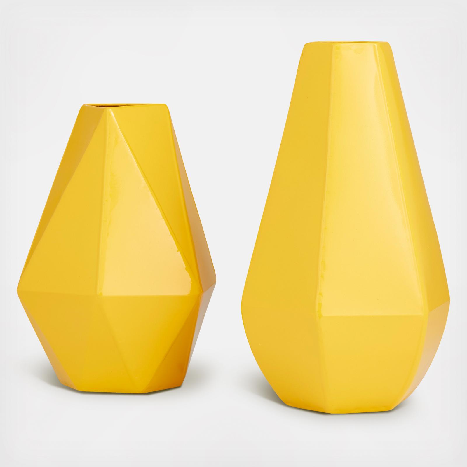 This bright and energizing pair of accent vases perfectly compliment one another as they are placed on top of finished tables and furniture. This vase is perfect for displaying orbs filler and twigs, as well as filling up any negative space against an open surface space. Create depth and form onto your space by displaying this beautifully crafted vase.