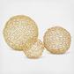 Featuring a gold circles overlay metal design, spacious top with slender structure that will glam up any space. Appreciate their design best against solid-colored backgrounds in contemporary settings. They make great unique decor on mantle, console table or in any living space. The satin gold home decor figurines are contemporary geometric sculptures with a round shape and clean lines. The round decorative statues set features a striking gold color with a satin finish.