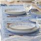 The warm breeze that blows from the east and imbues the Algarve coast with fruity aromas and the fresh flavors of Ria Formosa was the inspiration of this collection. The blended white and blue glazes and organic shapes transport us to the intricate landscape of lagoons, canals, salt works, and sandy beaches stretching across deserted islands. This collection adds light to every gathering and turns any table into a memorable experience.