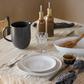The warm breeze that blows from the east and imbues the Algarve coast with fruity aromas and the fresh flavors of Ria Formosa was the inspiration of this collection. The blended white and blue glazes and organic shapes transport us to the intricate landscape of lagoons, canals, salt works, and sandy beaches stretching across deserted islands. This collection adds light to every gathering and turns any table into a memorable experience.