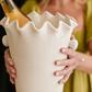 Expand your customer's Signature White Collection or start their new obsession with our multi-functional Signature White Ruffle Ice Bucket. This new design has round knobs for easy grips and a neutral palette to stun in every home. Perfect for everyday use, this ceramic ice bucket looks equally stylish as a vase for fresh-cut flowers or chilling a bottle of wine for an intimate dinner for two. Seamlessly blending into any home décor, this versatile ruffle ice bucket makes an ideal hostess or wedding gift – add a bottle of bubbly, and you’ve wrapped up the perfect present!