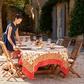 The rich harvest tones of the Fleur des Indes tablecloth compliment its curling vines and exotic floral designs, adding a sense of natural splendor to any meal. Suitable for formal, festive, and casual events alike, this high-quality linen features Eastern motifs with classic French country styling, and has been handprinted by skilled artisans using a time-honored technique – learn about the process here.