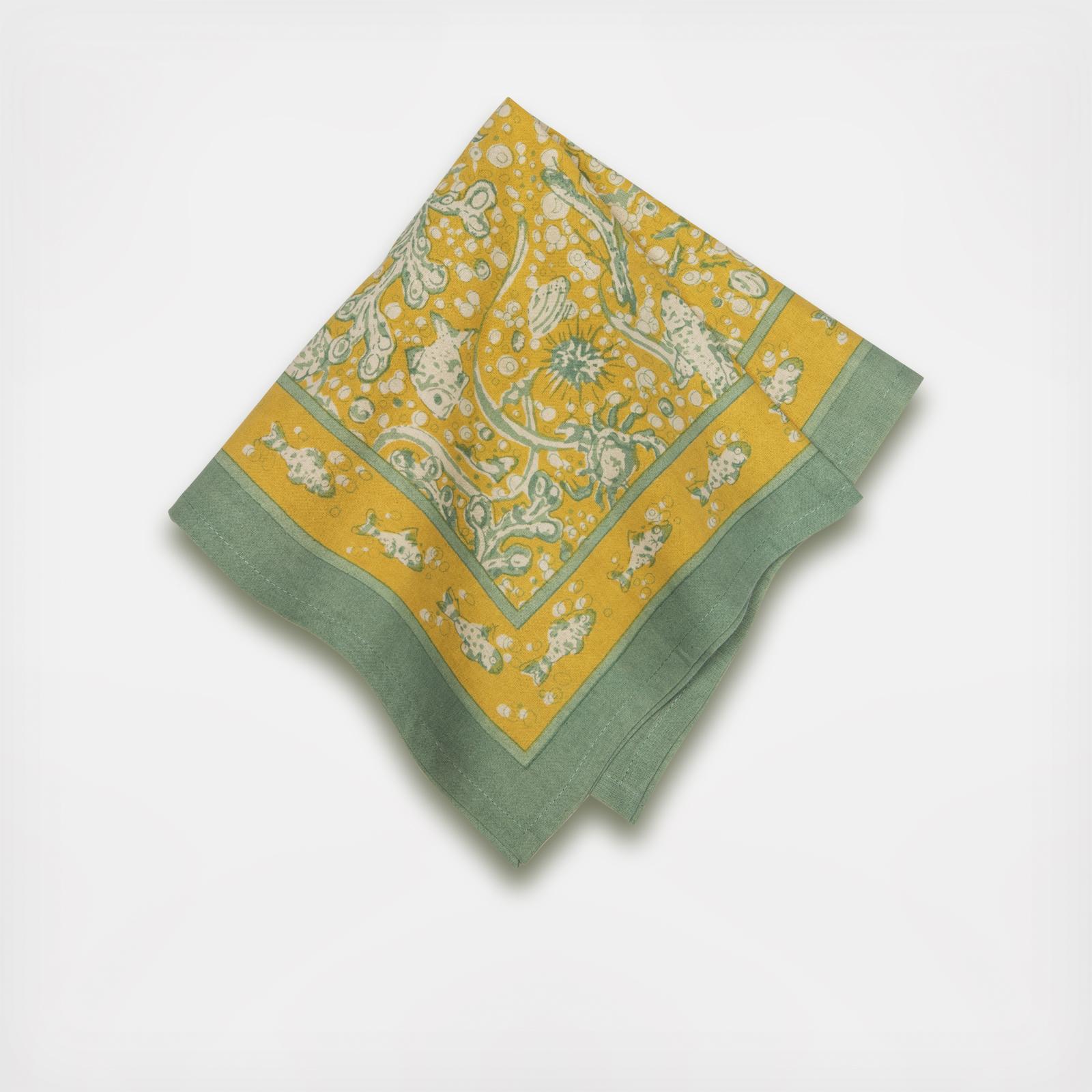 Escape to the alluring coastal destinations such as Saint-Tropez and the gorgeous Cote d'Azur. Experience cool ocean breezes and watch as the sun sparkles across the water. With its soothing seascape color palette and fanciful creatures, the La Mer Collection will offer a serene table setting for any summer celebration. Bring the south of France and carefree days by the sea to your home. Fine French table linens, hand-printed. A fine linen cloth napkin transforms the ordinary meal into a dining experience and makes guests feel cared for, adding an extra element of polish to any occasion.