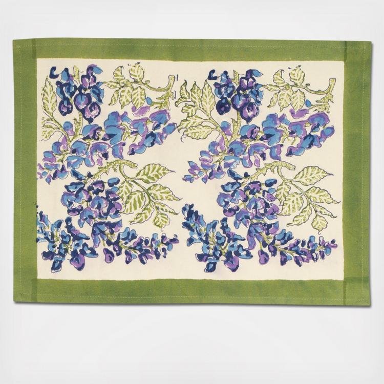 The Wisteria collection features olive green vines with delicate pendant-like blooms. The ivory background with it’s cascading blue and purple-tinged flowers create a beautiful landscape for your delicacies. Dine-in style amidst memories of gorgeously perfumed flower clusters. This elegant piece is a tasteful essential in every linen collection!