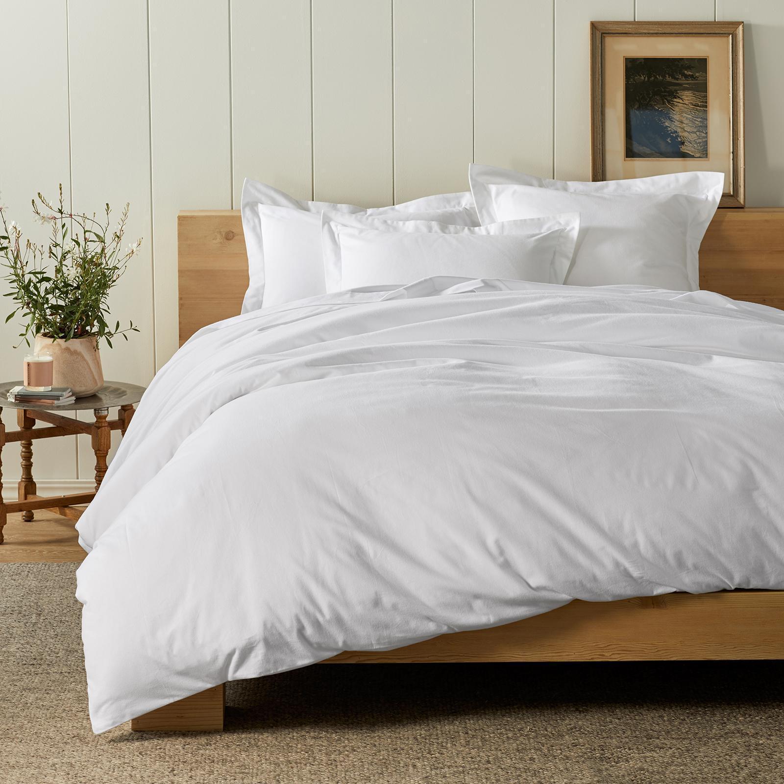 Thick cotton flannel, brushed many times to generates an incredibly soft hand. These weighty six-ounce sheets are luxuriously comfy and warm. The flat sheet and pillowcases have a 4 inch self-hem. The fitted sheet has a deep 15 inch pocket and full elastic around the bottom for an easy fit. Cotton is 100% organic, and sourced and woven in Portugal.