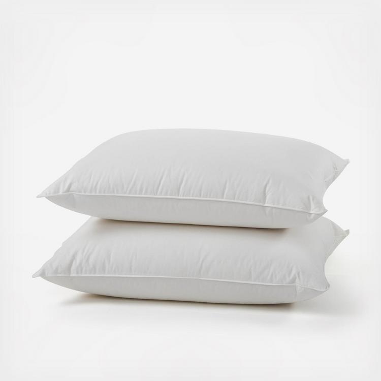 This plump, soft pillow is filled with a blend of 90% feathers and 10% down. It offers just the right comfy support for reading, watching movies or doing the Sunday crossword in bed. The cotton shell is organic and down-proof, and the fill is double-washed.