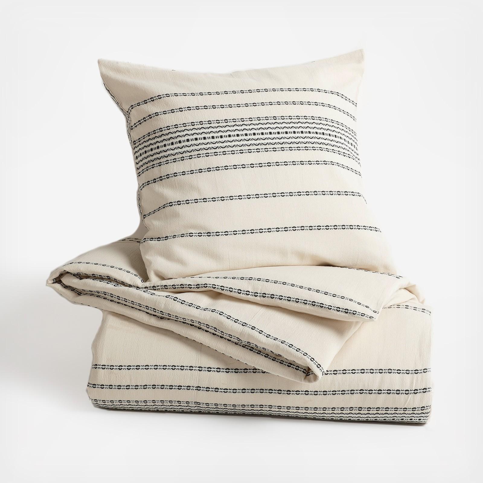 Textural, dobby-woven stripes traverse soft, organic cotton to create a duvet cover that's vibrant yet versatile. Prewashed for softness, it'll look as relaxed and inviting years from now as it does today. Self-backed and finished with a simple knife-edge and coconut shell buttons.