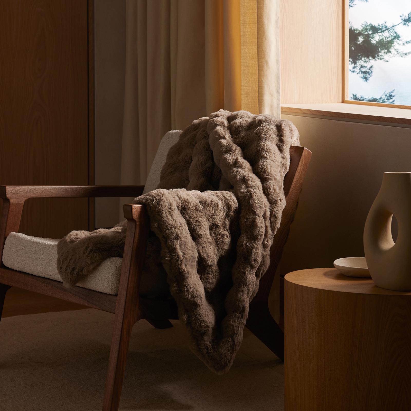 Lose yourself in luxury with our Bubble Cuddle Blanket. This blanket offers a combination of comfort and style with its distinctively textured design intricately woven from ultra-soft fibers. Showcasing an extended, plush pile and mid-weight construction, this faux fur blanket makes the perfect centerpiece for your living room or bedroom.