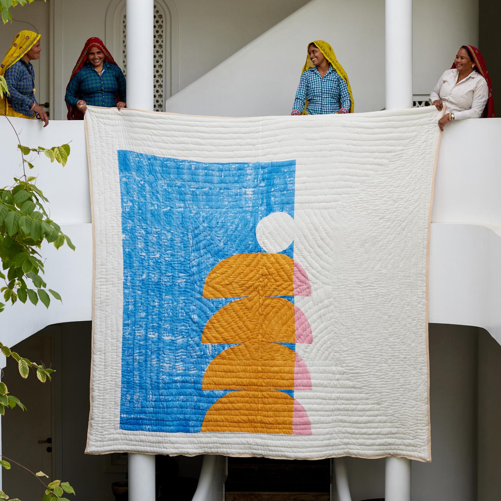 This reversible, hand-printed quilt is made from 100% cotton and requires attention from four artisans, including wood carvers, block printers, quiltmakers, and dye specialists. The design is hand-pressed onto each quilt using hand-carved wooden blocks dipped in dyes. The printed cotton shells are brought to the homes of quiltmakers, who stuff and stitch the quilts by hand, creating the final product. CQC LA quilts are made in small batches. Due to the handcrafted nature of this item, expect slight variations in the appearance of each unique piece.