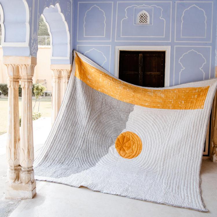 This reversible, hand-printed quilt is made from 100% cotton and requires attention from four artisans, including wood carvers, block printers, quiltmakers, and dye specialists. The design is hand-pressed onto each quilt using hand-carved wooden blocks dipped in dyes. The printed cotton shells are brought to the homes of quiltmakers, who stuff and stitch the quilts by hand, creating the final product. CQC LA quilts are made in small batches. Due to the handcrafted nature of this item, expect slight variations in the appearance of each unique piece.