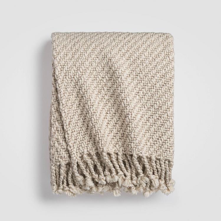 Rich in texture and warmth, this two-toned chunky knit throw blanket is designed for ultimate comfort with a modern rustic twist. The thick weave and twisted fringe edges offer a cozy, tactile appeal that invites you to unwind. Pair it with bedding from the Calm Collection to complete your serene sanctuary. OEKO-TEX® Standard 100 certified.