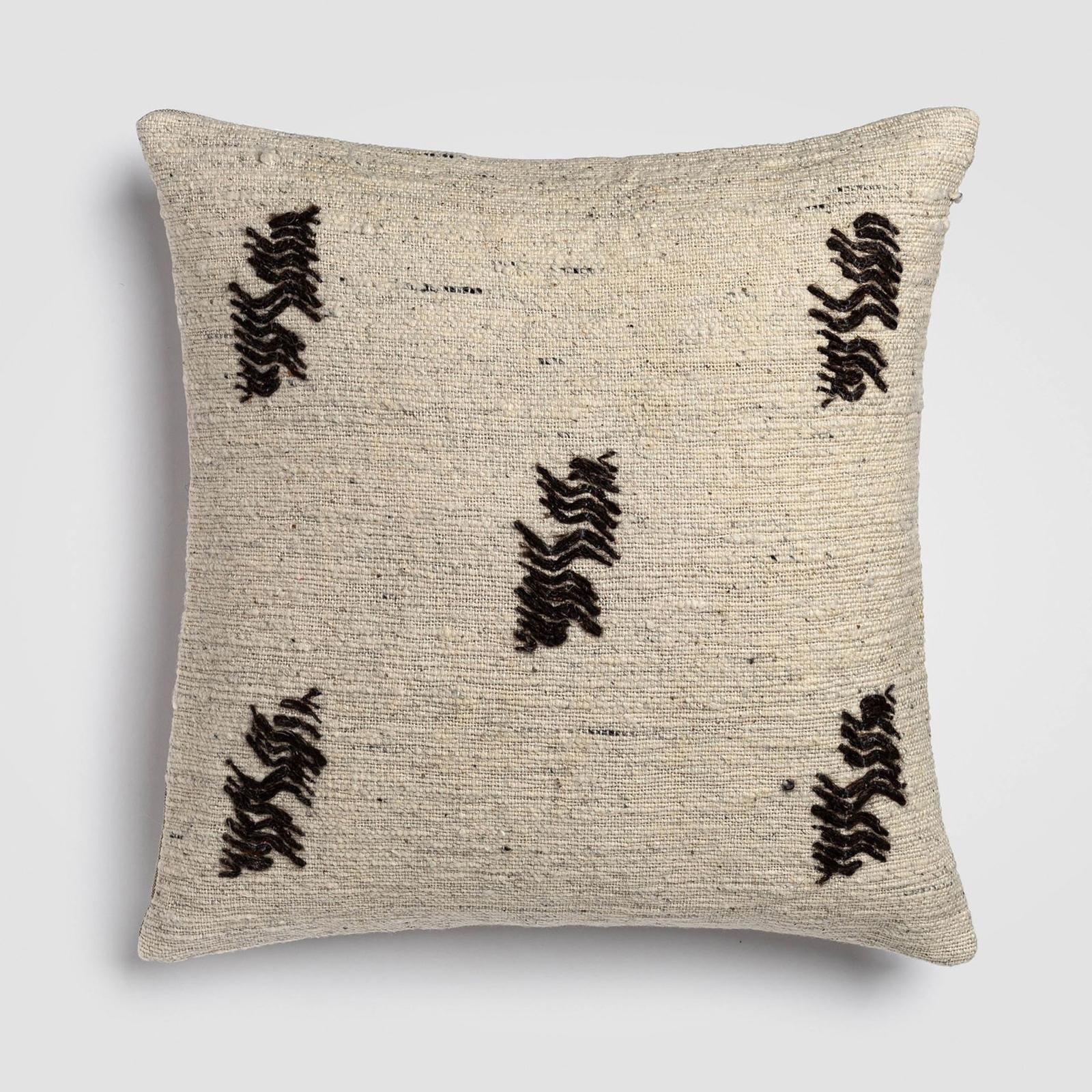 This leaf throw pillow blends textured traditional weaving with organic embroidered patterns to create a calming, artisan-inspired piece. Neutral tones and handmade detailing offer a grounded accent perfect for tranquil spaces. Includes pillow insert.