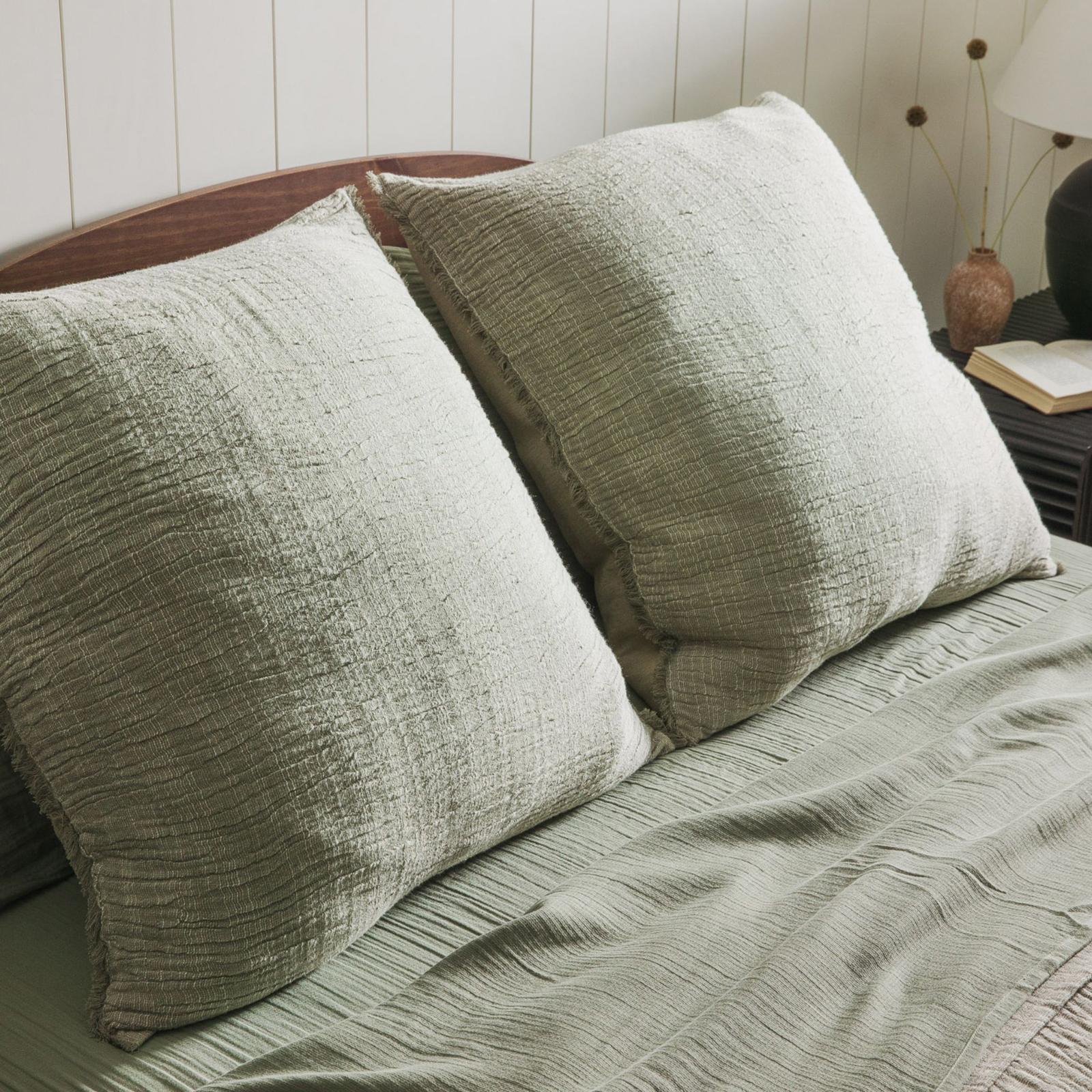 Rooted in the balance of nature and simplicity of Japanese design, the Zen Collection evokes a sense of mindfulness through soft green hues and breathable textures. It’s designed to create harmony in your bedroom retreat. Complete the look by layering this sage euro sham set (back envelope closures) with the Zen duvet cover, sheet set, and coordinating pillow shams.