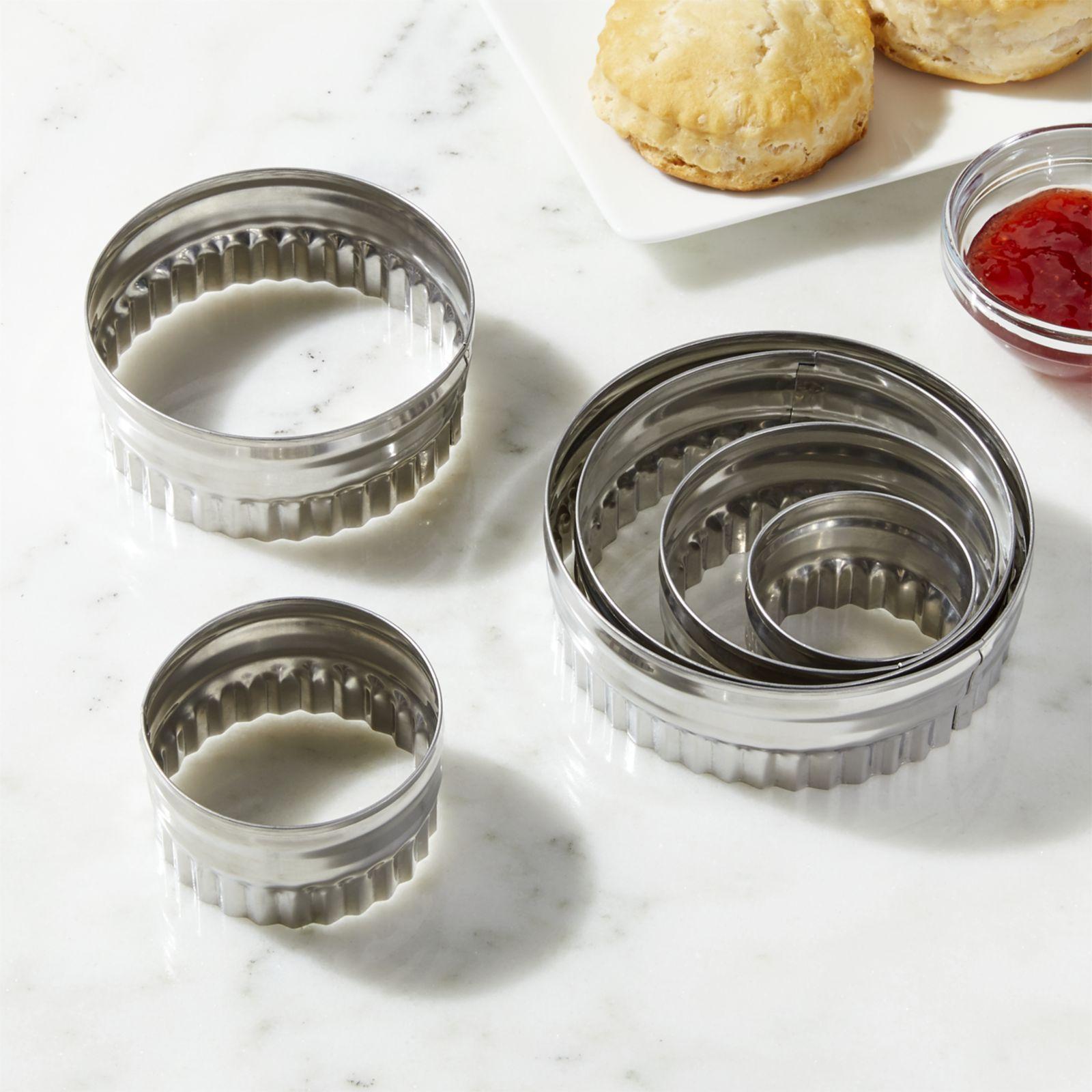 These little cutters are a classic for a reason. Each easy-to-use cutter in the set is double-edged, with one smooth edge for cutting perfect circles and one daintily fluted edge for sweetly scalloped cookies and biscuits. This set of six nests to save kitchen space, while the sturdy stainless steel construction makes for easy cleanup.