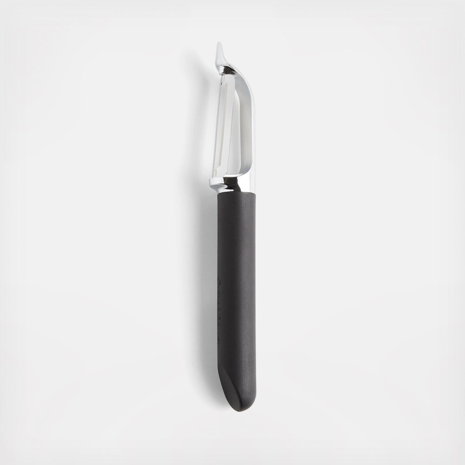 Peel potatoes, cucumbers and butternut squash with ease using the signature peeler. Crafted with a swivel blade, the dishwasher-safe tool glides smoothly over fruits and vegetables, allowing you to peel in both directions. Die-cast zinc shapes a sleek utensil fitted with a black soft-touch handle for a sturdy, comfortable grip. Love the way the refined beveled edge finishes the handle with a dynamic detail. The exclusive soft-touch tools make for a well-outfitted workspace that’s up to any cooking challenge.