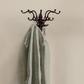 Crafted with meticulous attention to detail, this wall-mounted coat or purse hanger features solid cast iron adorned in a stylishly distressed finish. The rustic charm of the design adds character and warmth to any living space, while the sturdy construction ensures longevity. Created with versatility in mind, this piece can be easily mounted in two different directions, allowing for seamless integration into any interior design scheme. With 15 sturdy hooks, each wall hanger provides ample space for hanging coats, hats, scarves, handbags, and more. Each 3-pronged hook conveniently swivels to provide easy access to stored items, and allows for effortless organization. The robust cast iron construction ensures reliability and resilience, making it suitable for heavy daily use. Combining timeless elegance, practical functionality, and superior craftsmanship, this distinctive piece offers a compact yet spacious solution for a variety of storage needs. Hanging hardware not included.