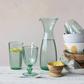 This sculptural decanter showcases bubble glass in a subtle tint
