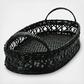 These trays are perfect for kitchens, coffee tables and entryways. Hand-woven, these trays are made out of rattan and feature a simple black color that will match with anything. Perfect for filling with decorative books, keys and other personal belongings, and small plants.