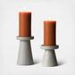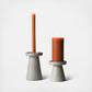 Stoneware candle holders in a modern shape juxtaposed with an embossed cross hatch texture and a gray satin finish, giving these just the right mix of Boho mod. This versatile set of 2 candleholders are made to hold either a 3” pillar or standard taper candle. Use on their own or integrate into a centerpiece to create a warm glow in any space.