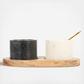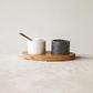 This set of marble bowls can be used for salt and pepper or other spices or condiments. They sit snuggly into the mango wood base for security when passing around the table. There is also a small salt spoon for sprinkling the spices or condiments onto your food.