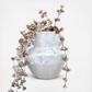 This light grey stoneware vase jar with handles adds style and functionality to any home. The stoneware vase jar has a classic shape with a wide mouth and a tapered base. It also has two vertical handles that make it easy to move and carry. The vase jar has a color with a reactive glaze finish that creates variations in tone and texture. The glaze also gives the vase jar a glossy and smooth surface. The vase jar is made of stoneware, which is durable and easy to clean. It can hold water and live plants or be used as a decorative accent on its own. It can be used as a centerpiece, a storage container, or a flower vase. The vase jar measures 8.5 inches long, 7 inches wide, and 8.25 inches high. This decorative vase is a simple yet elegant addition to any home decor.