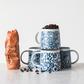 Hand-stamped with a design of its own, each of these mugs features a different floral scene with varying shades of blue. Framing the rim of the mug is a decorative circle of gold. Adding these mugs to the dinner table will bring a sense of delicate elegance. Pair with blue napkins and vivid blue candles in the center for a truly exquisite setting.