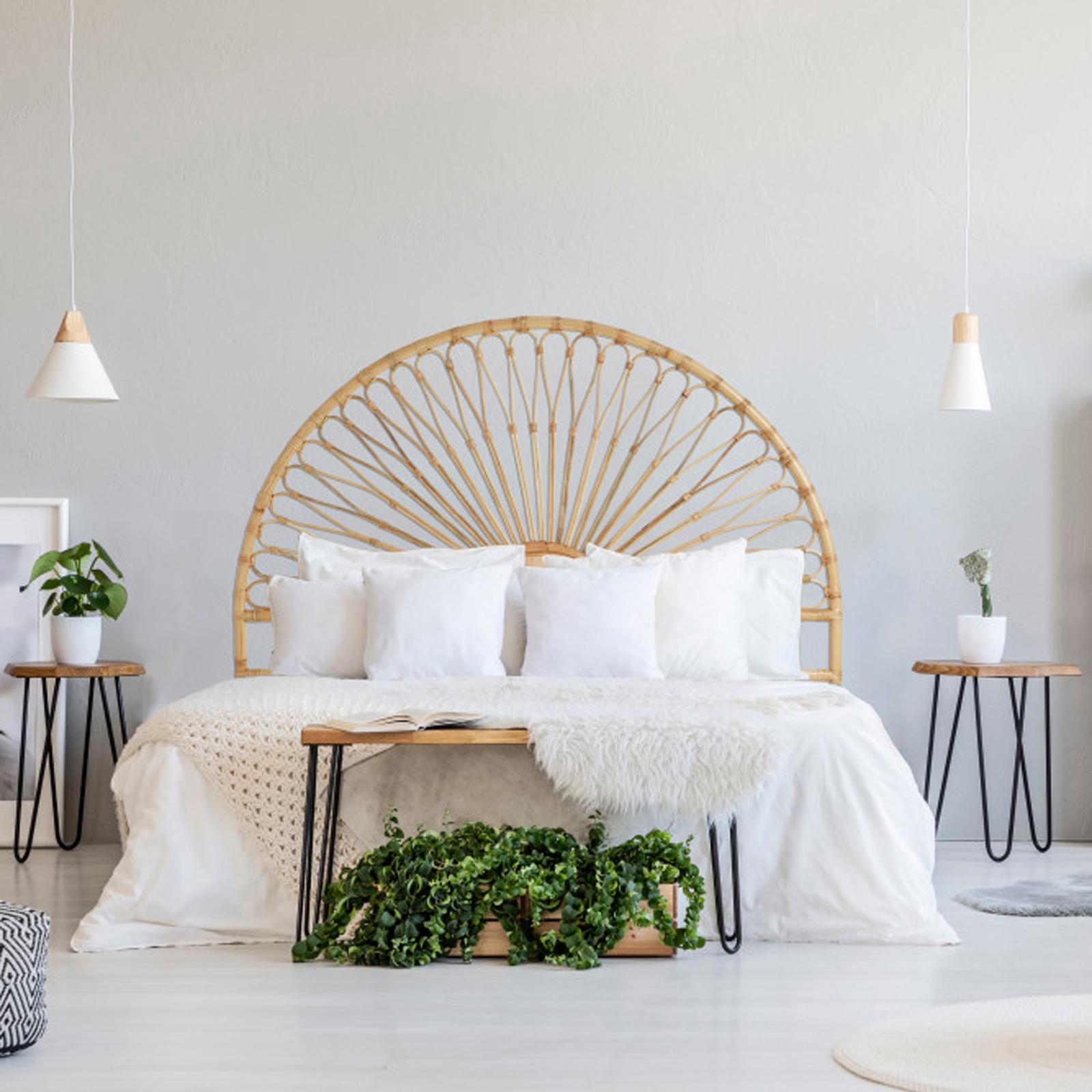 Each Rattan Headboard is handmade in the lush and tranquil islands of Indonesia where skilled artisans gently bend and weave native bamboo into this sunrise, these easy-to-use headboards will add a sense of peace to your bedroom for years to come. This uniquely patterned rattan headboard is the perfect addition to any home that is wanting a boho statement piece for their bedroom. Whether the style is bohemian or eclectic, this headboard makes the perfect statement.