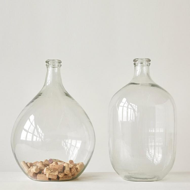 Add some style and elegance to any home with this large decorative glass bottle. This gorgeous bottle is made of clear glass that has a round shape and a high neck that gives it a sleek and sophisticated look. It can be used as a vase to hold a single stem or a branch of choice, whether it's a rose, a eucalyptus, or a willow. The bottle can also be used as a centerpiece to create a stunning focal point on any table, mantel, or shelf. Or it can simply be used as a decorative accent to add some sparkle and charm to any room. This glass bottle is made of high-quality glass material that is sturdy and easy to clean. Whether adding some color, fragrance, or texture to any home, this large decorative glass bottle will surely impress anyone and their guests.